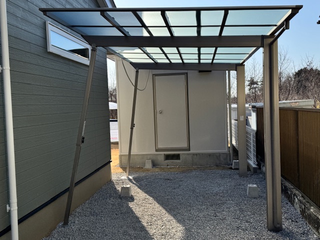 小屋の前に車庫を作り木工用の小屋をこれから自作します
